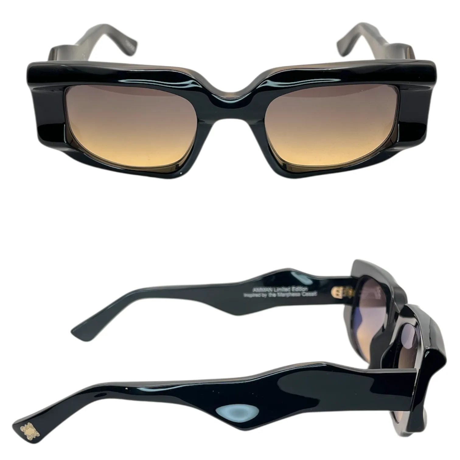 Montatura nero lucido lente marrone sfumato ocra