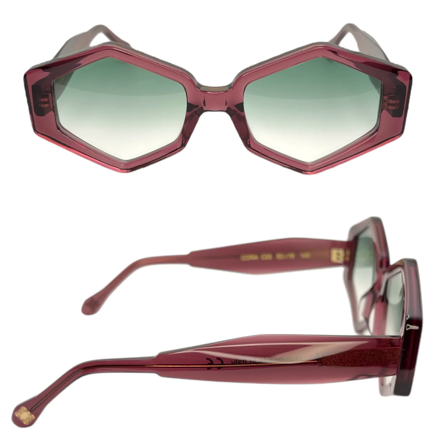 Montatura ciliegia trasparente lente verde sfumato