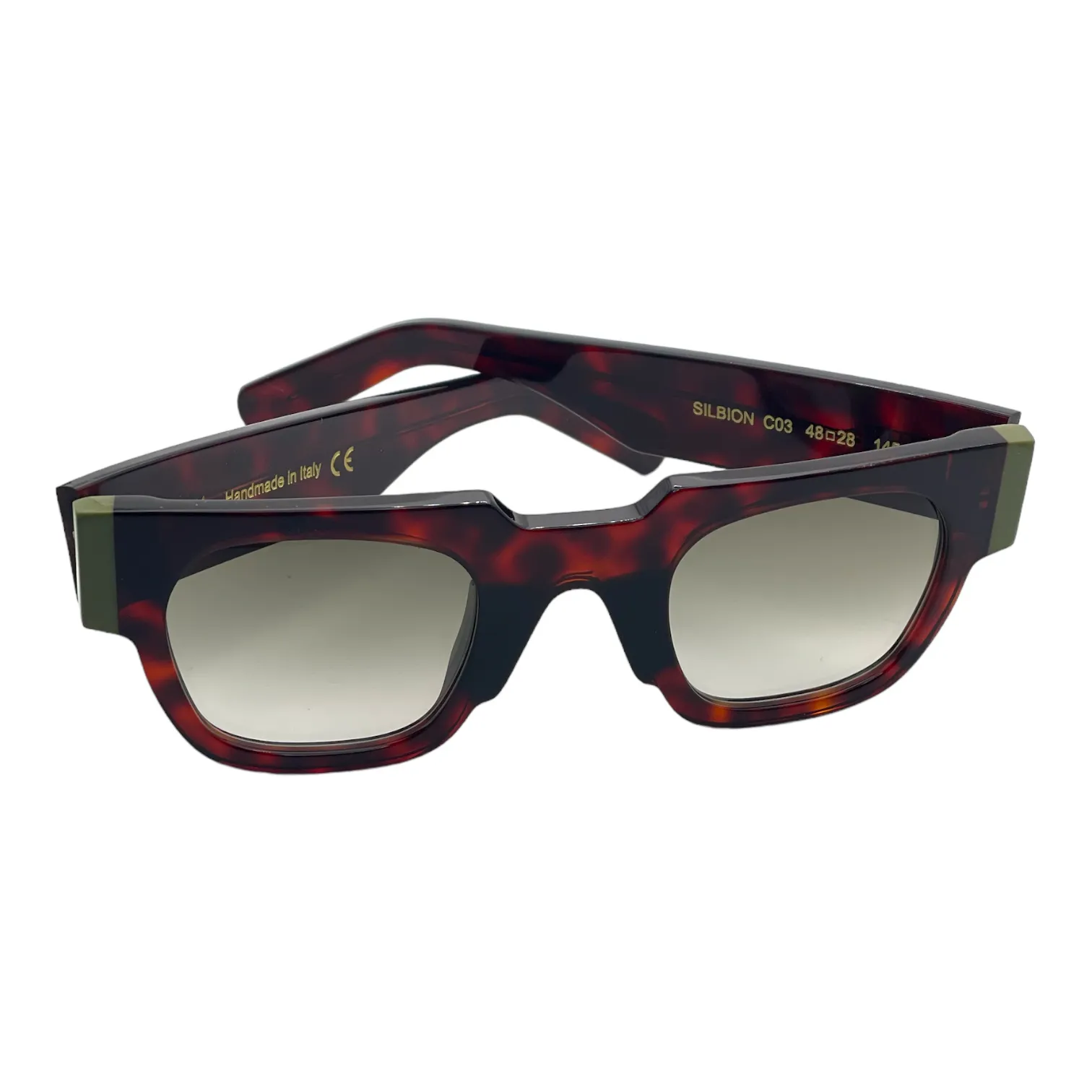 Montatura tartaruga scuro e verde oliva lente verde sfumato
