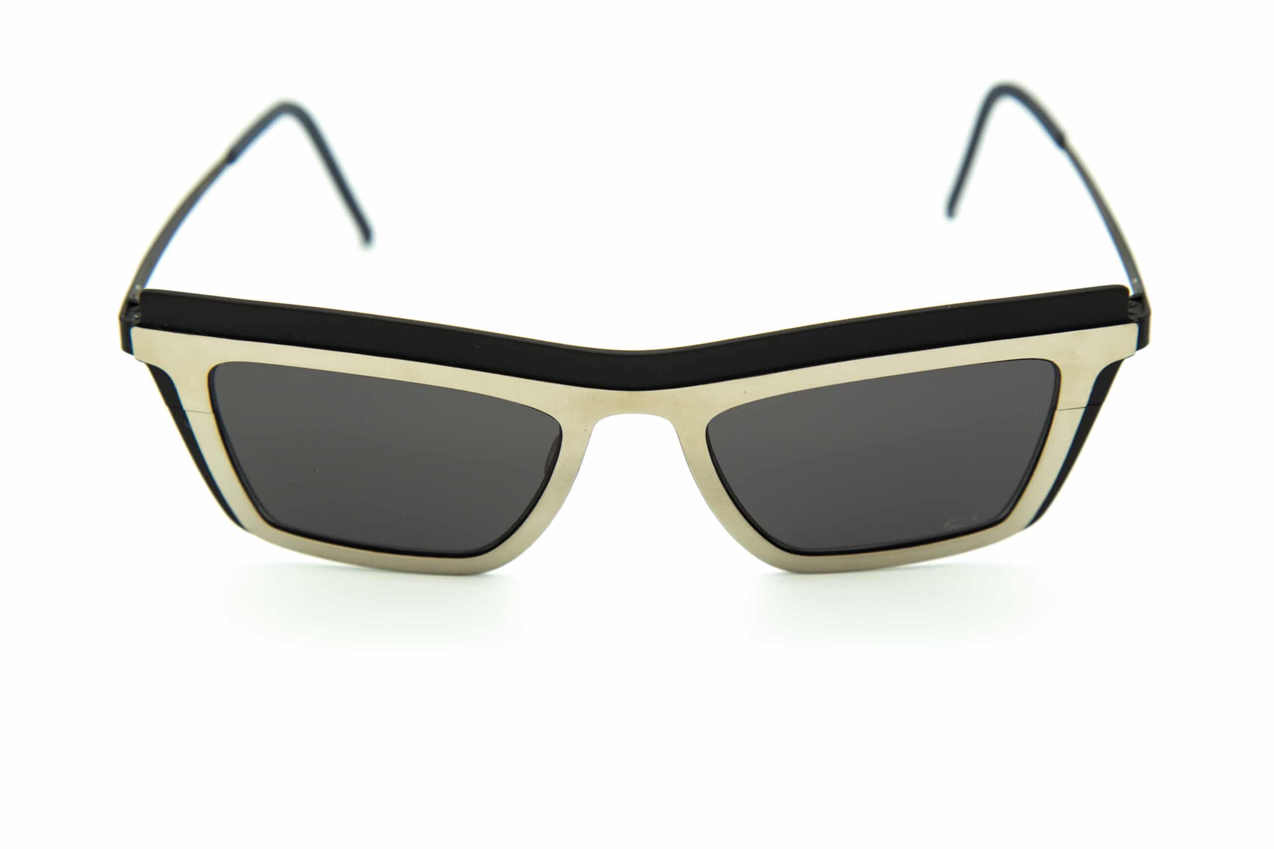 Montatura colore nero opaco con cornice argentata Lente colore grigio scuro