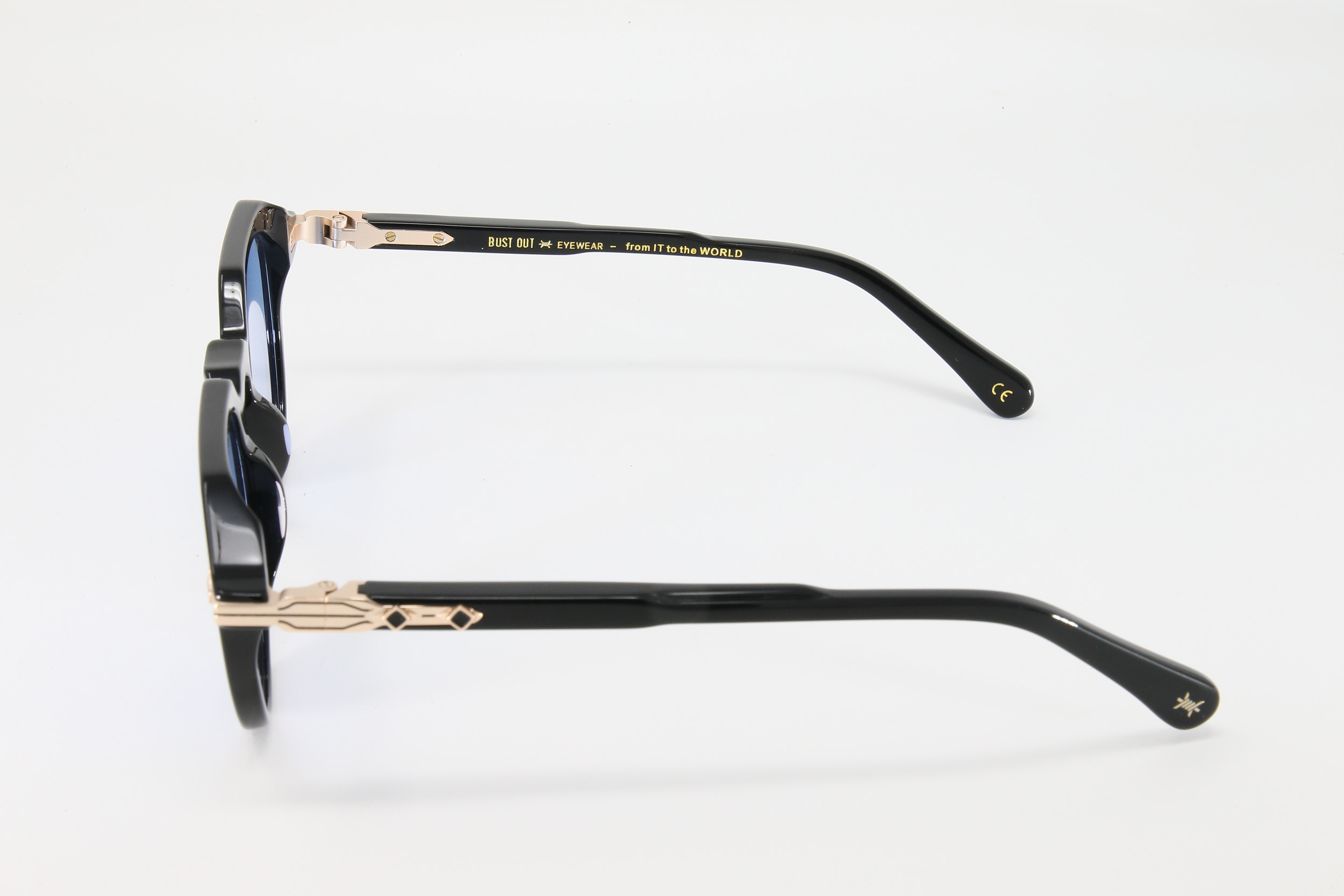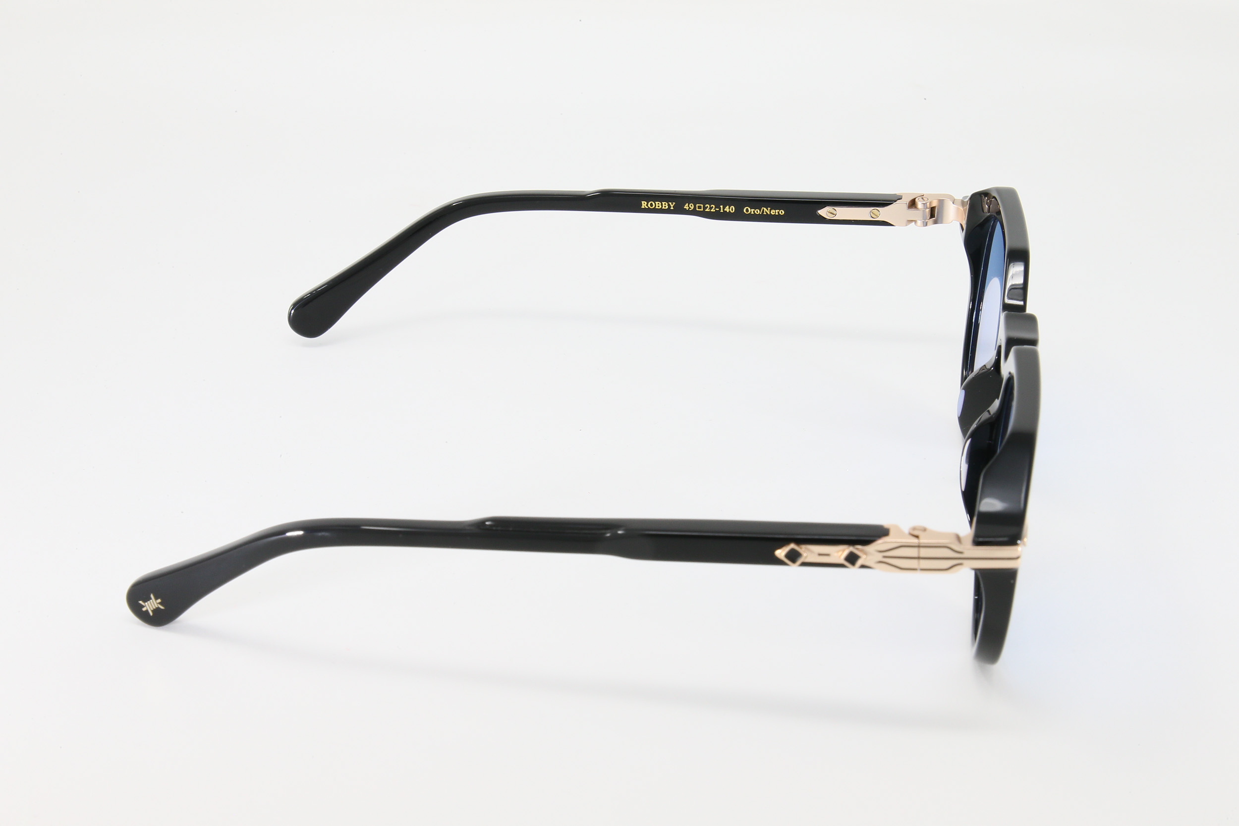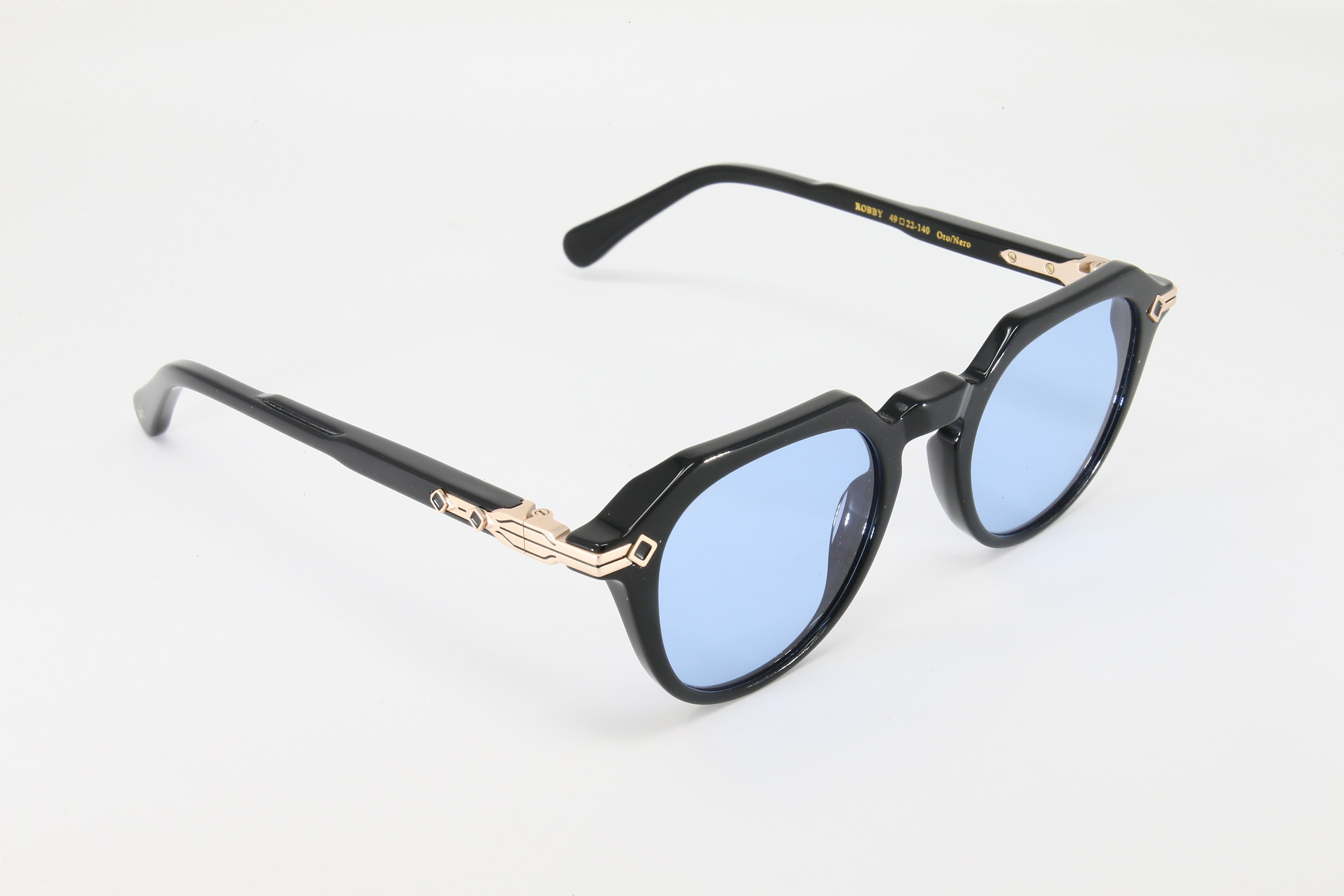 montatura colore nero lucido con lente azzurra