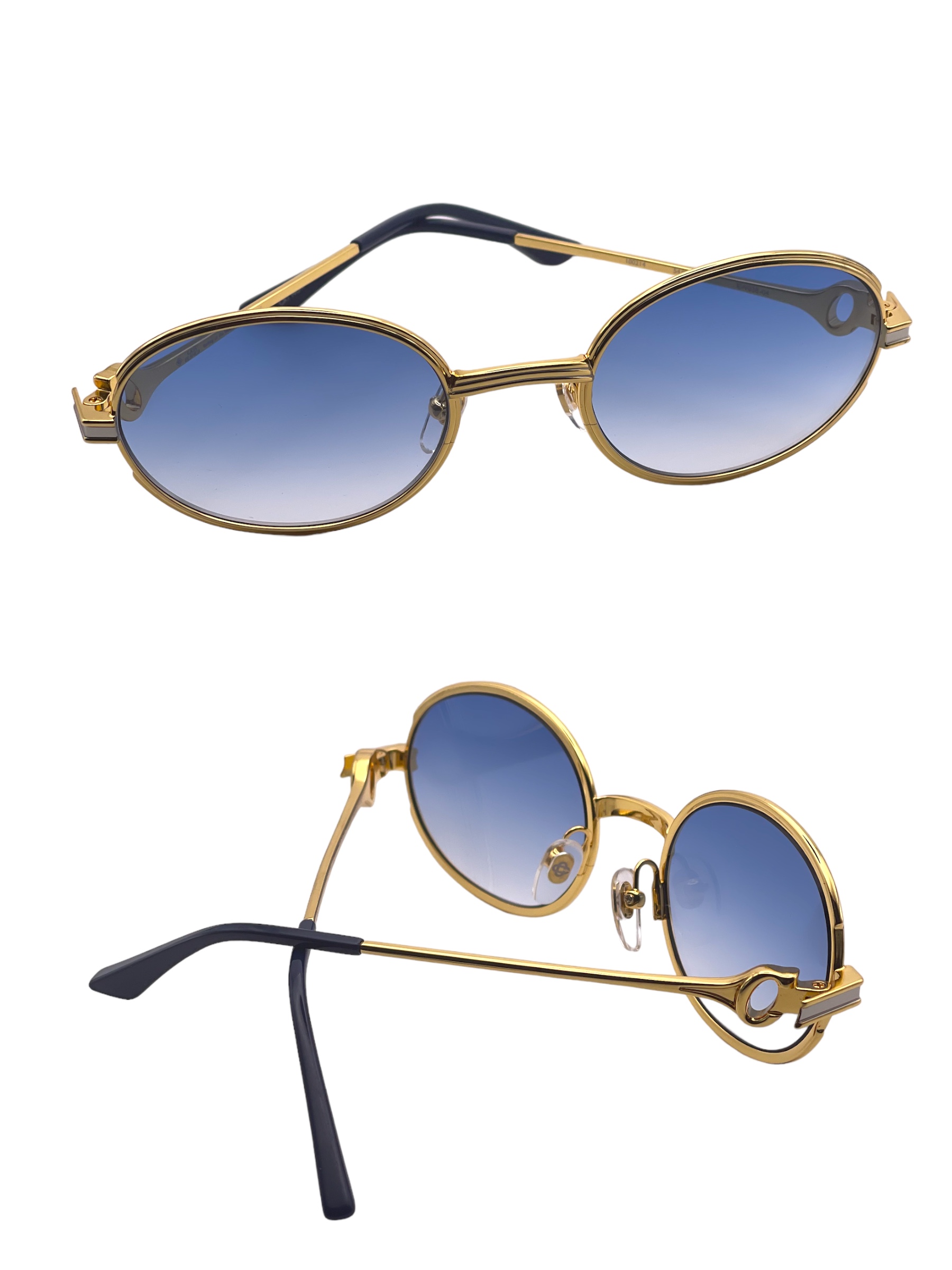 Montatura oro lucido lente azzurro sfumato