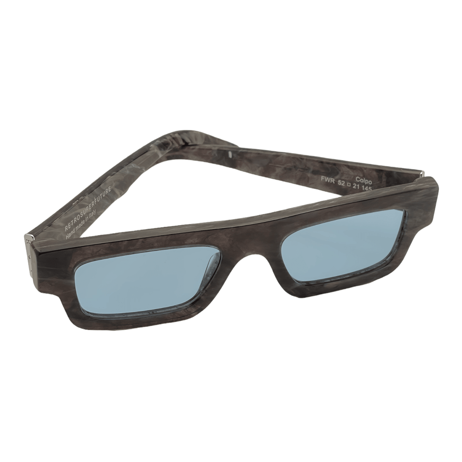 Montatura marmo grigio scuro lente azzurra