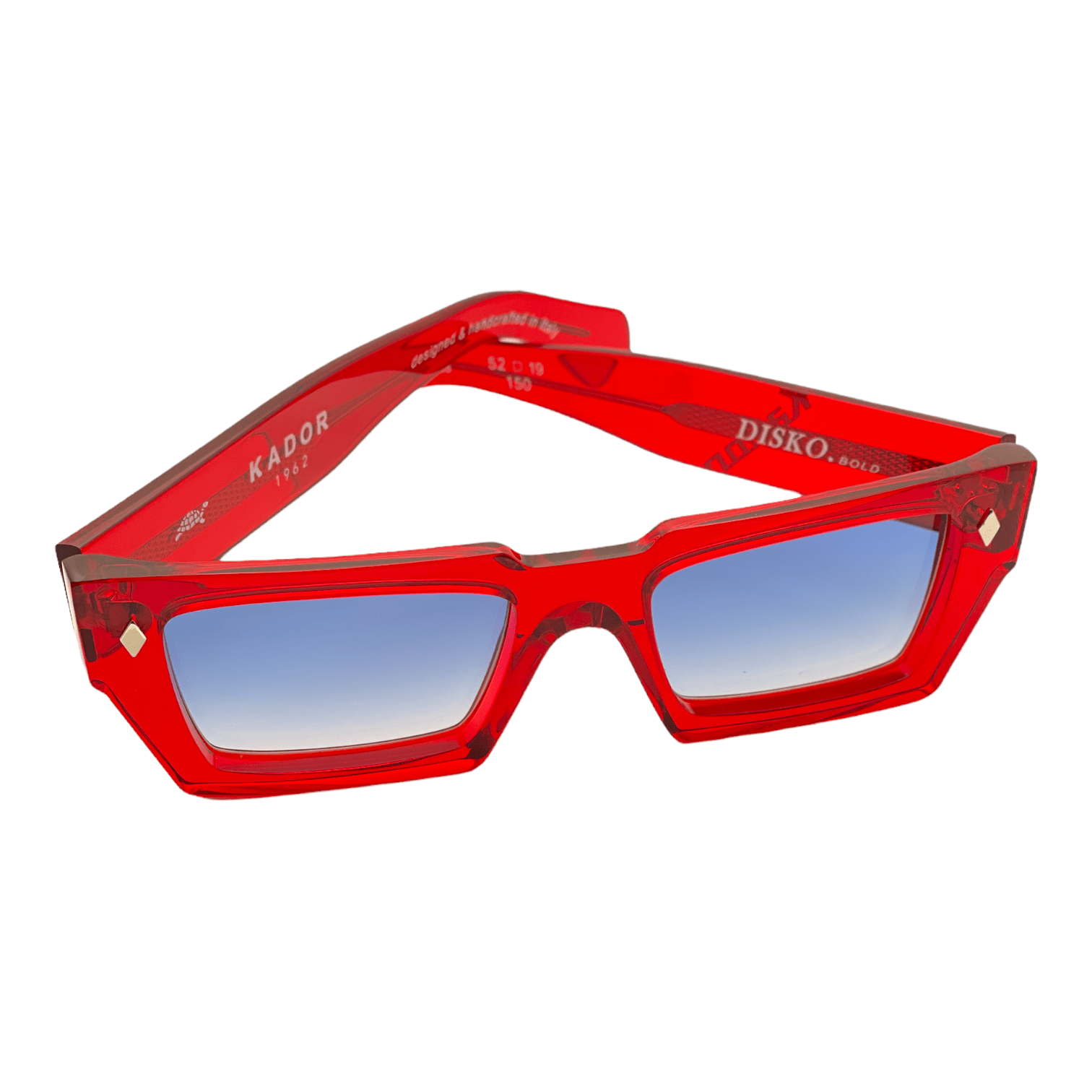 Montatura rosso trasparente lente azzurro sfumato