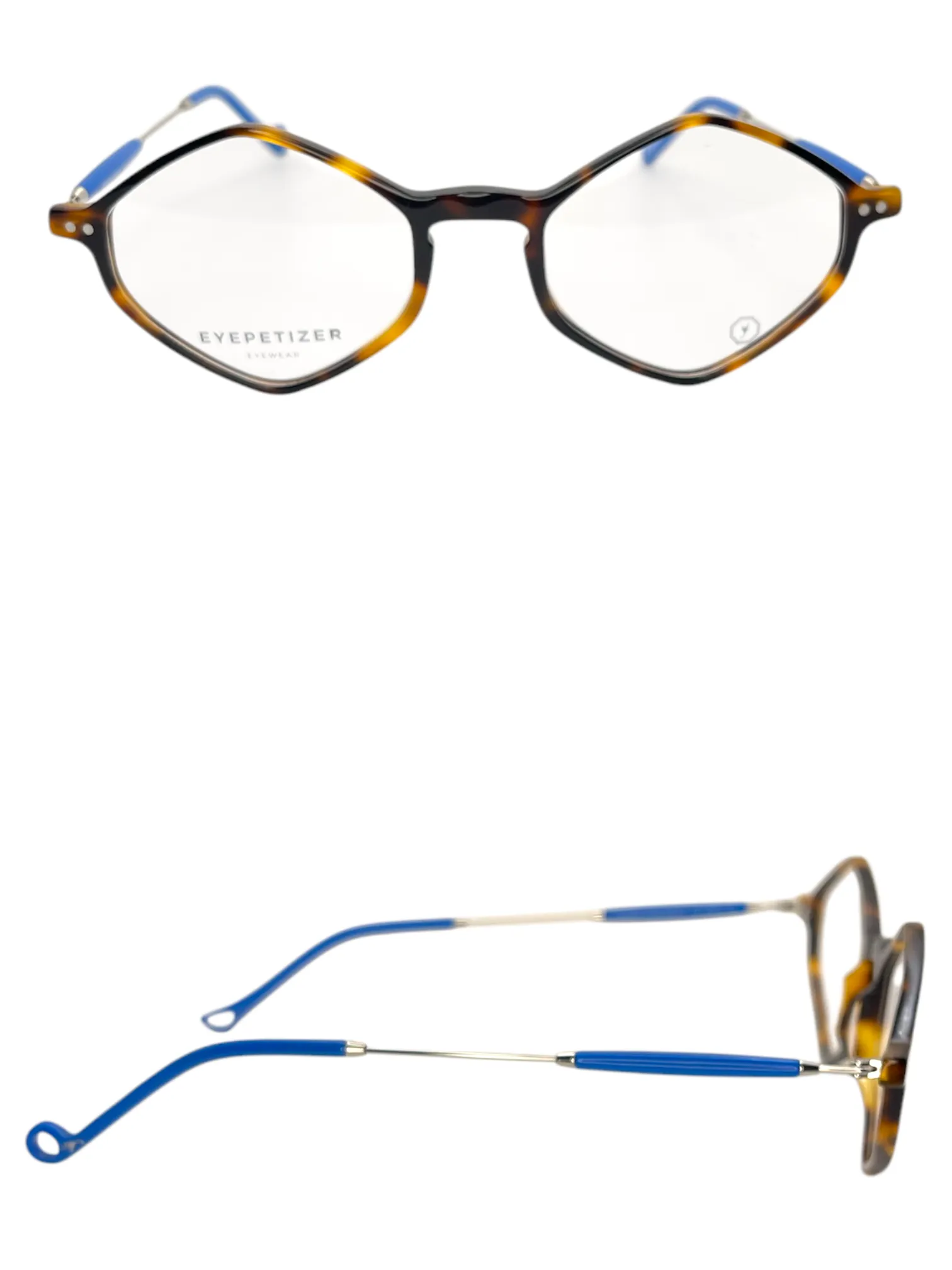 Montatura tartaruga lucido aste blu e oro