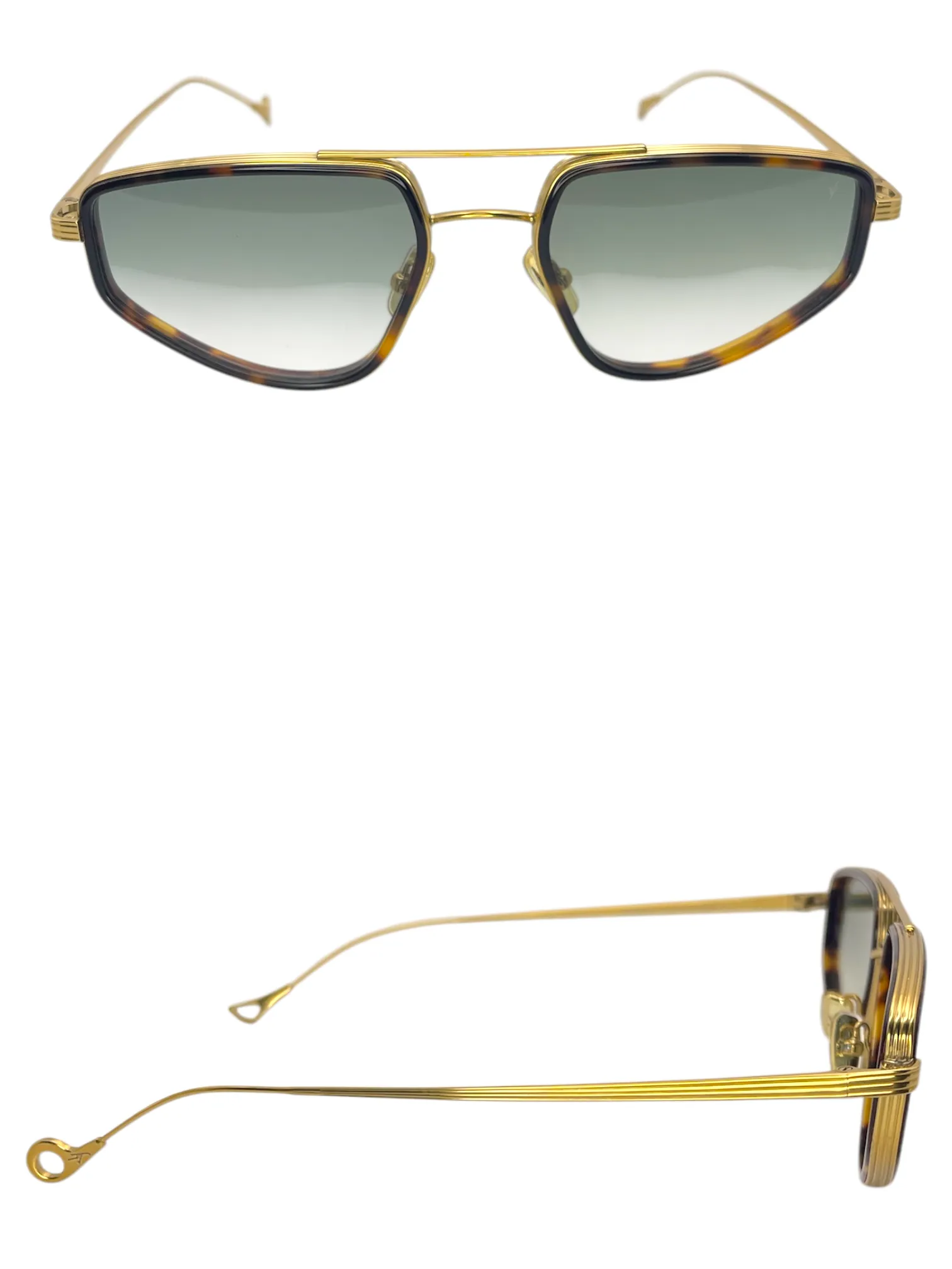 Montatura oro lucido bordato tartaruga lente verde sfumato