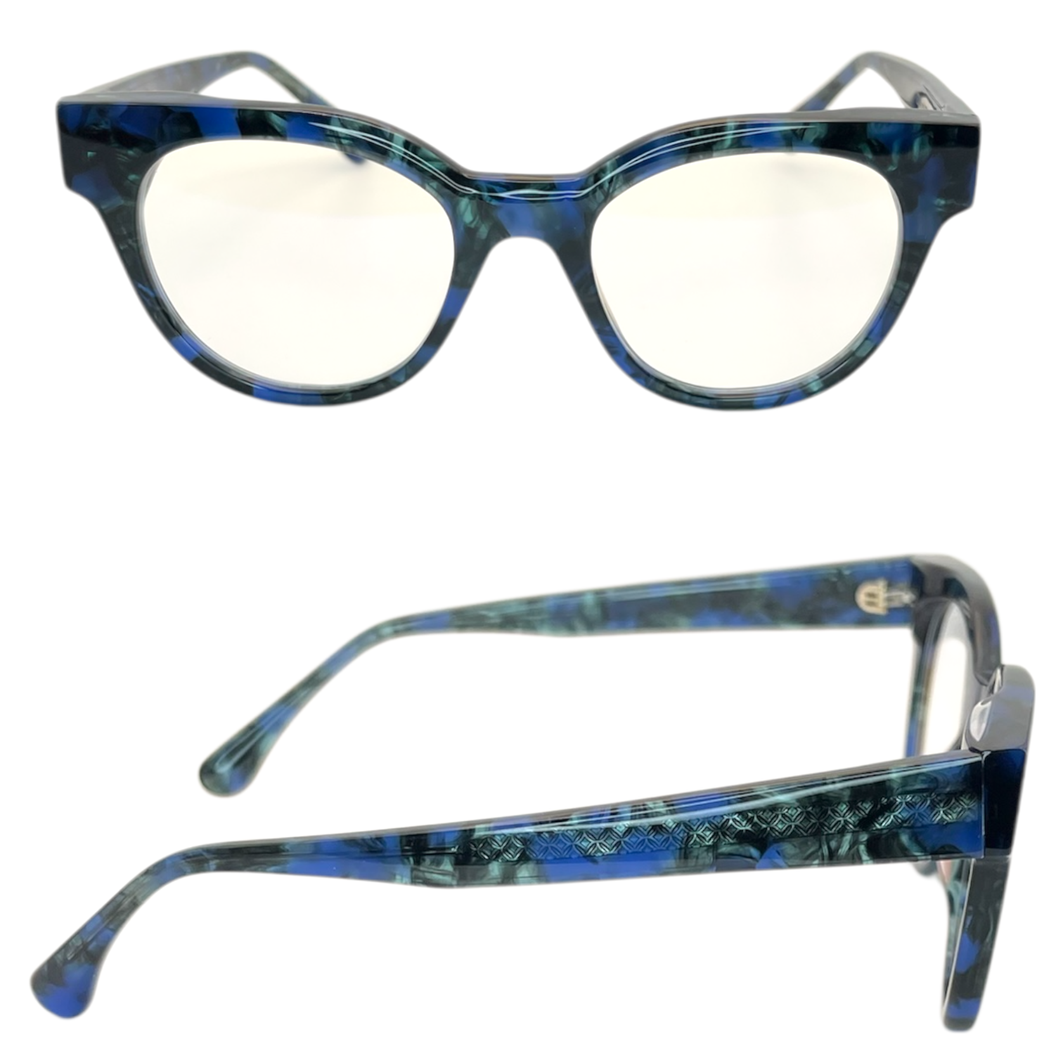 Montatura tartaruga blu lucido