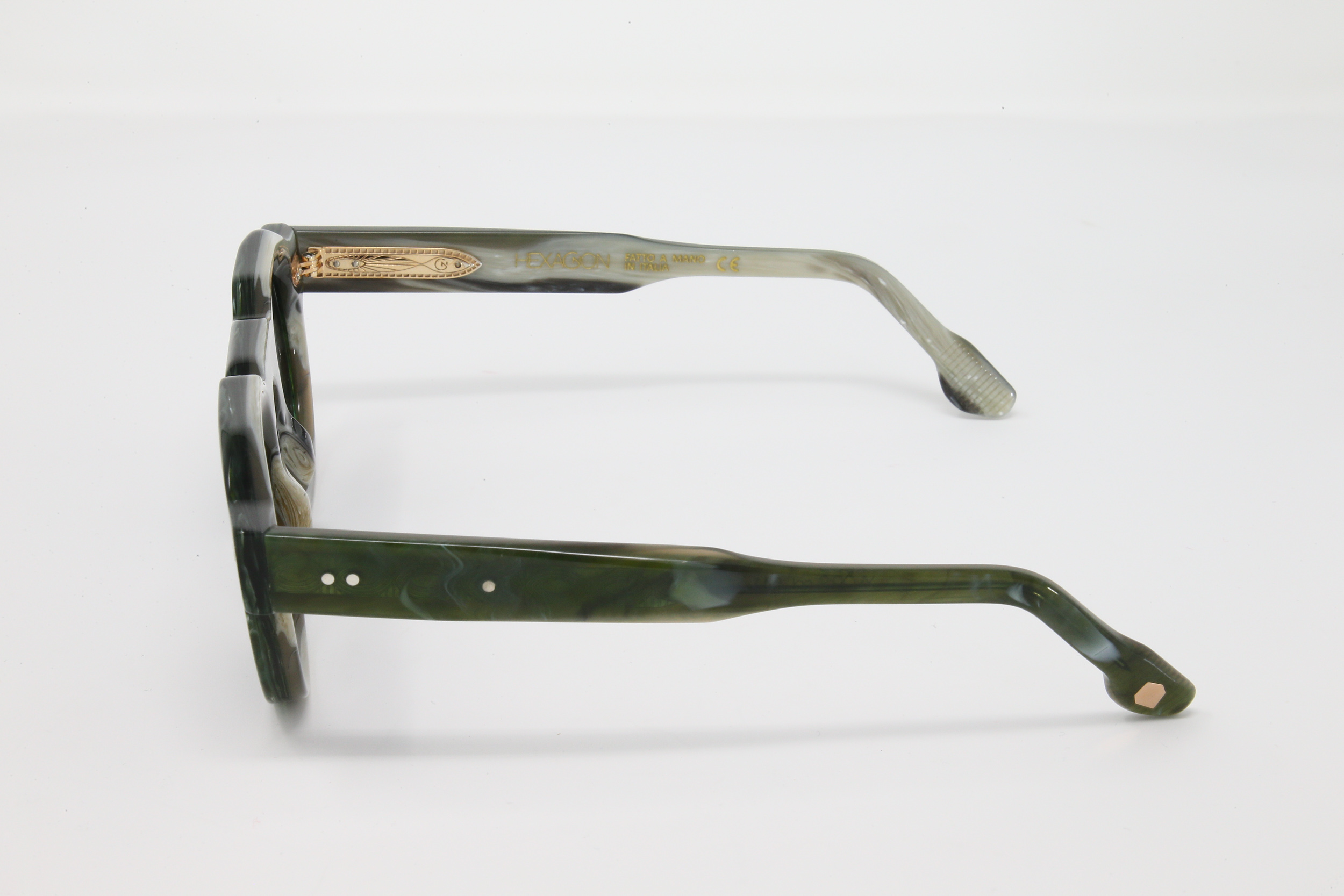 | Colore montatura | montatura colore verde marmorizzato ed interno corno |