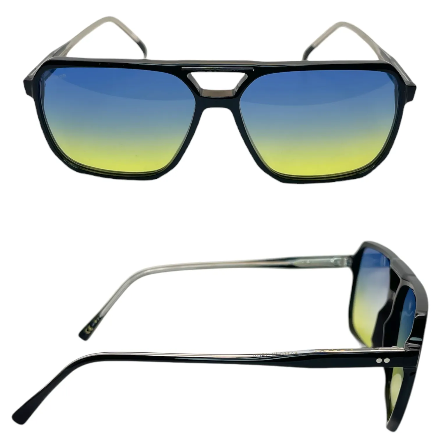 Montatura nero lucido lente blu sfumato giallo