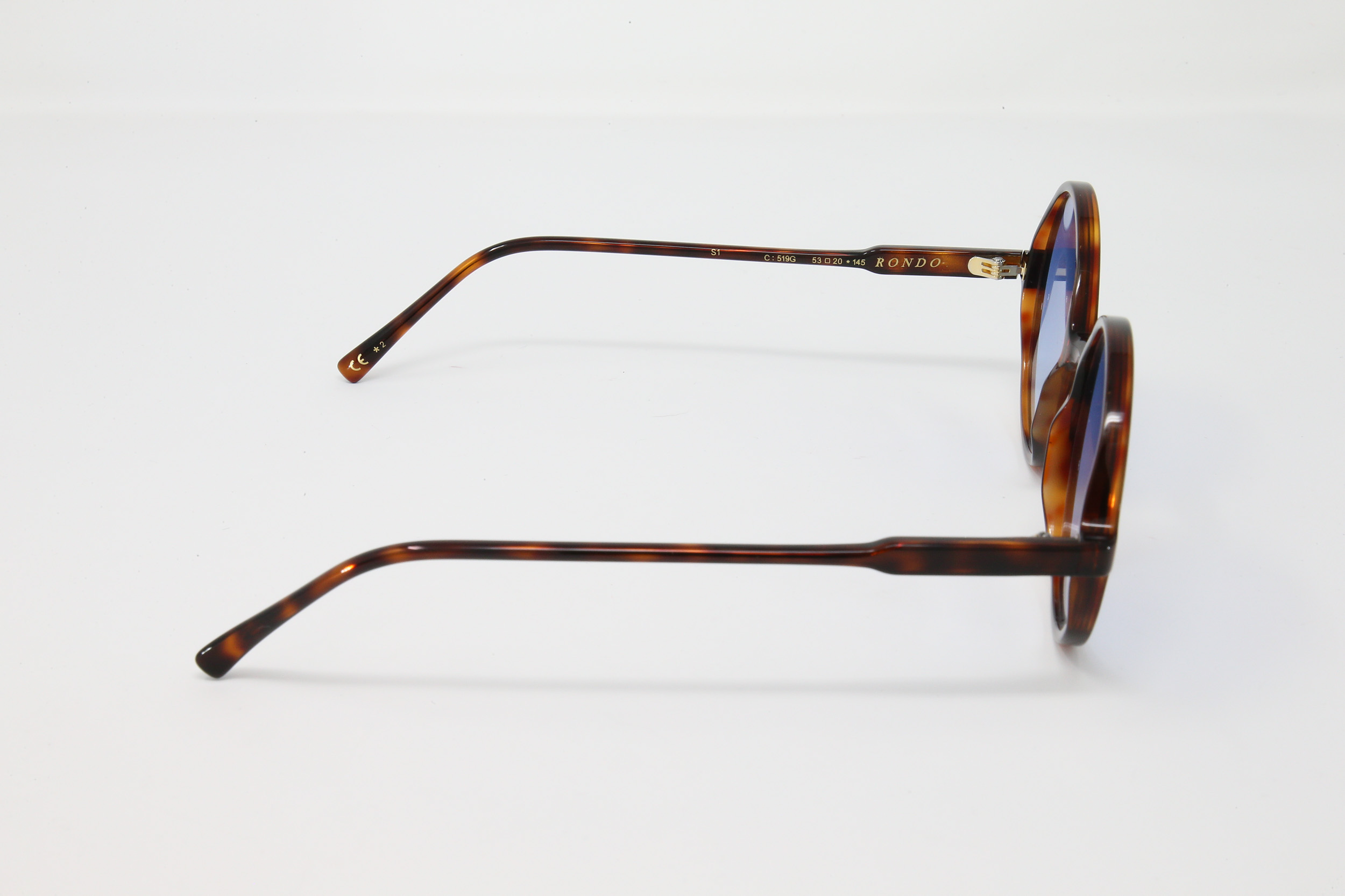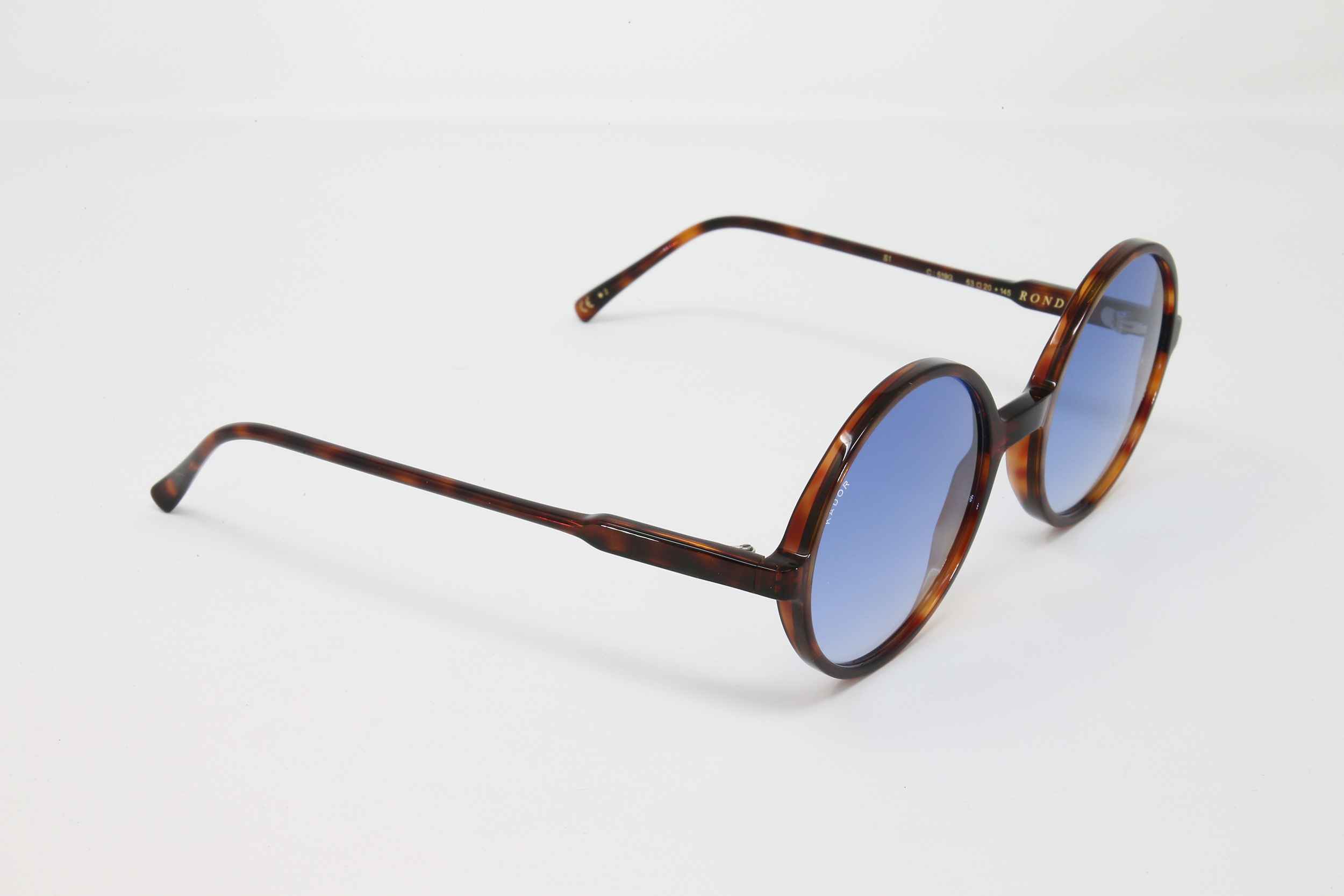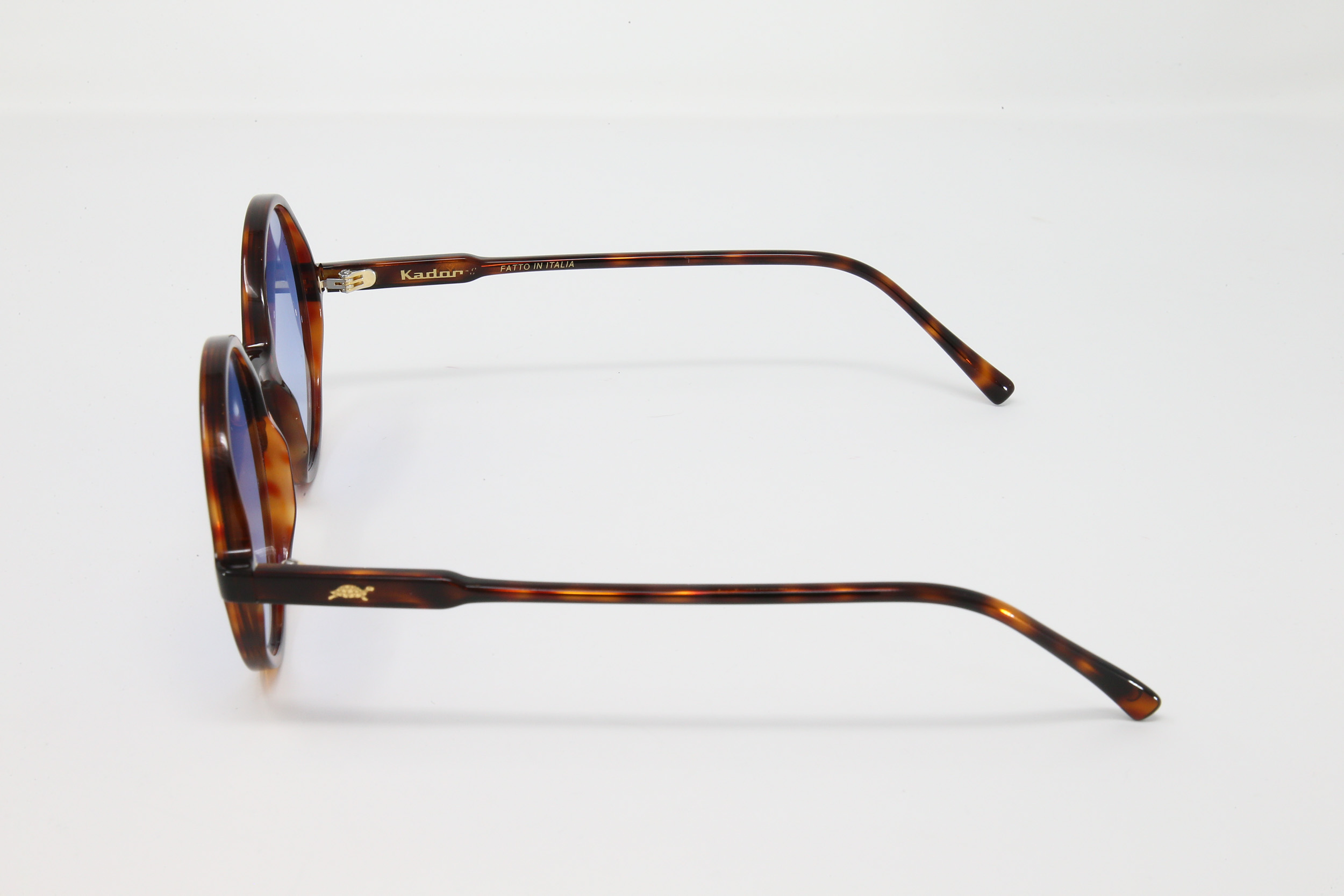 montatura tartaruga lucida con lente blu sfumata