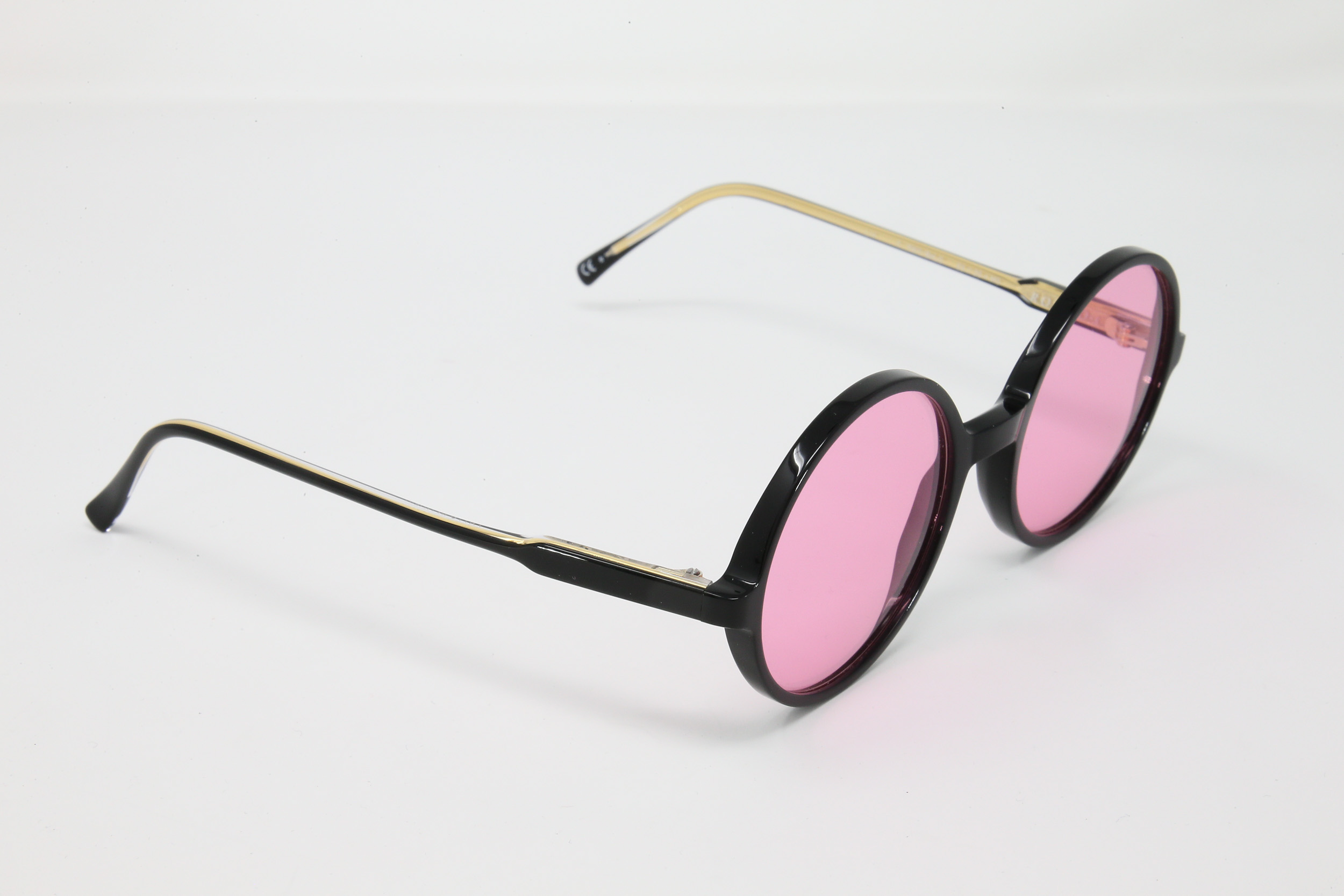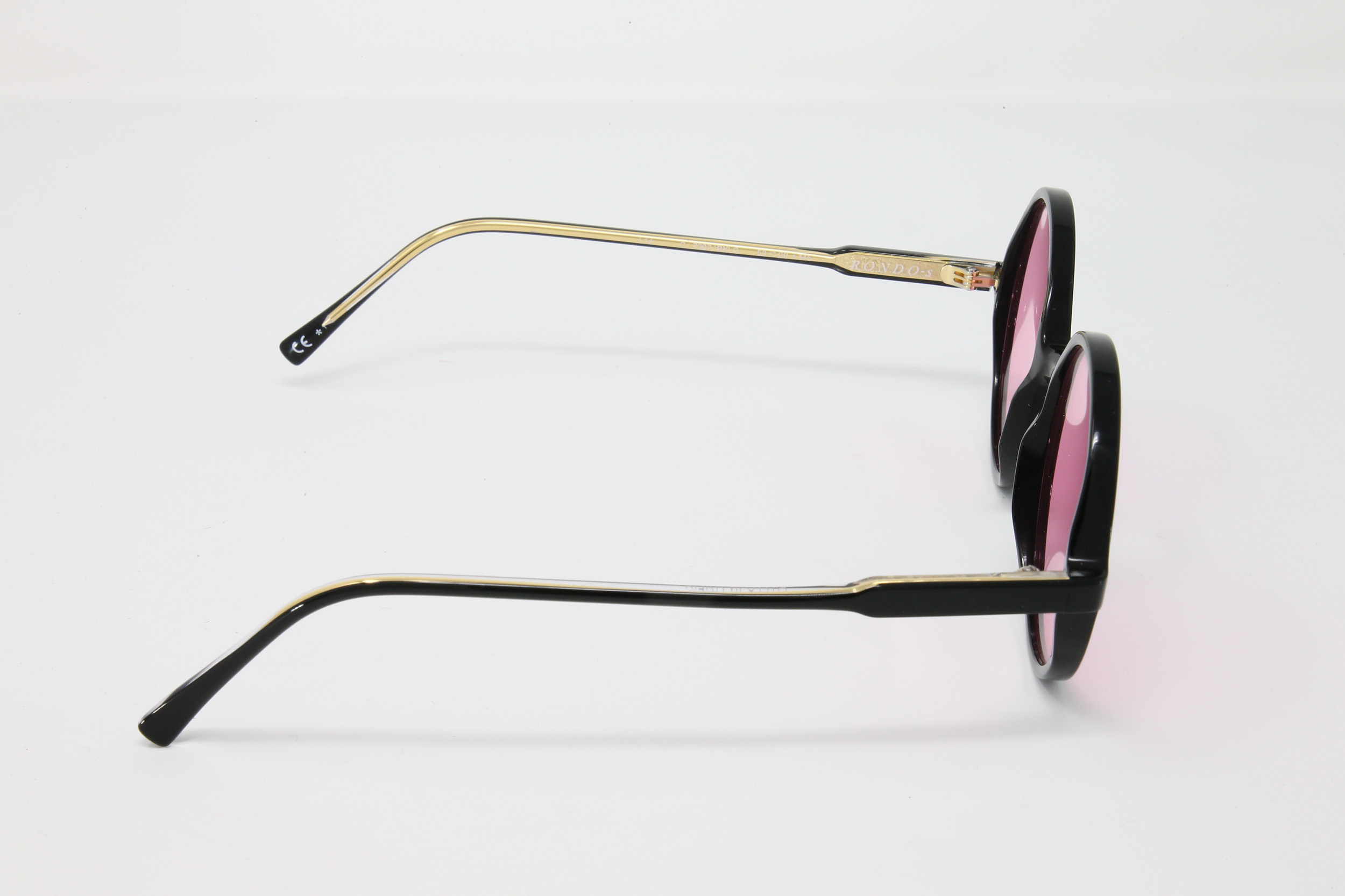 montatura colore nero lucido con lente rosa con antiriflesso interno