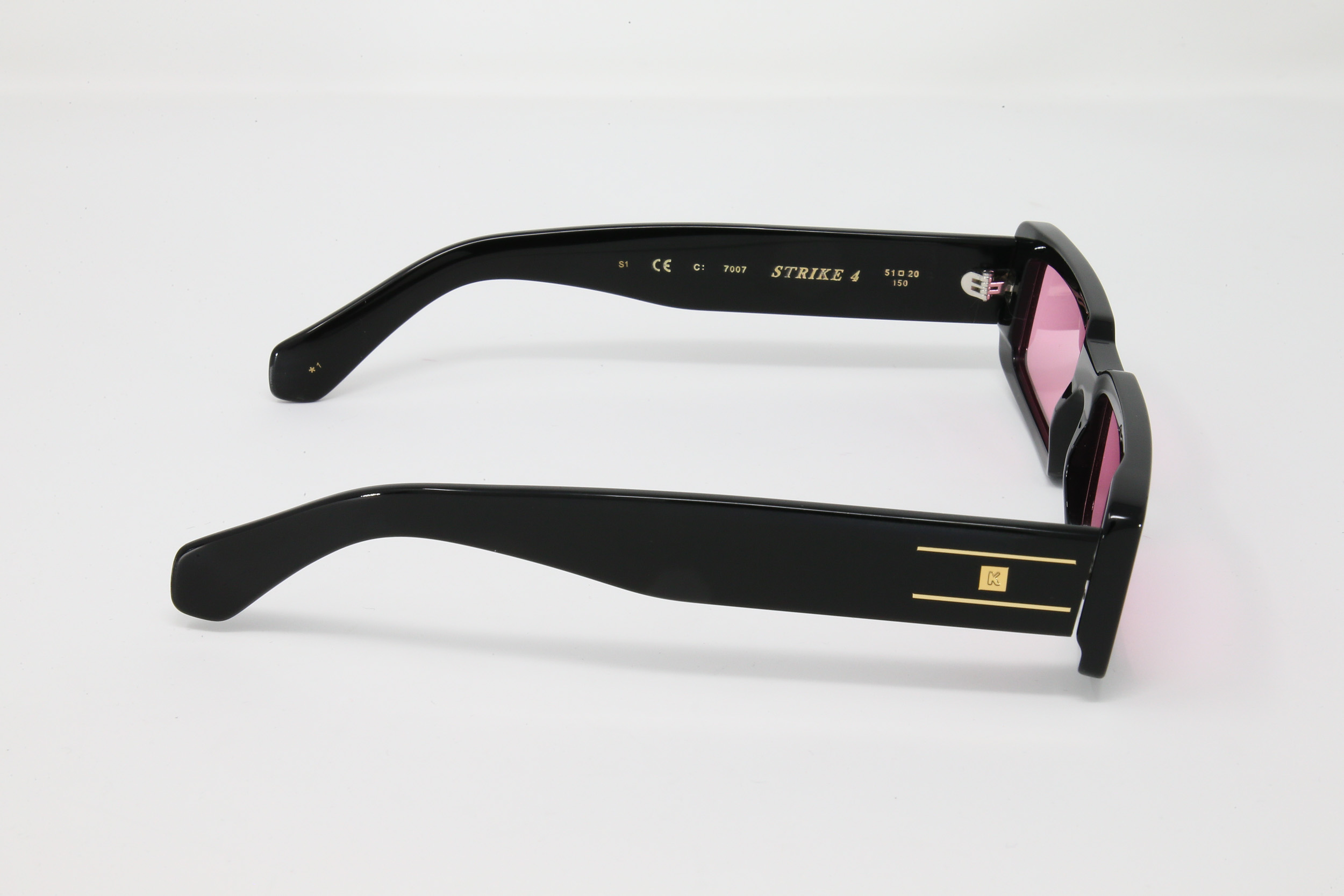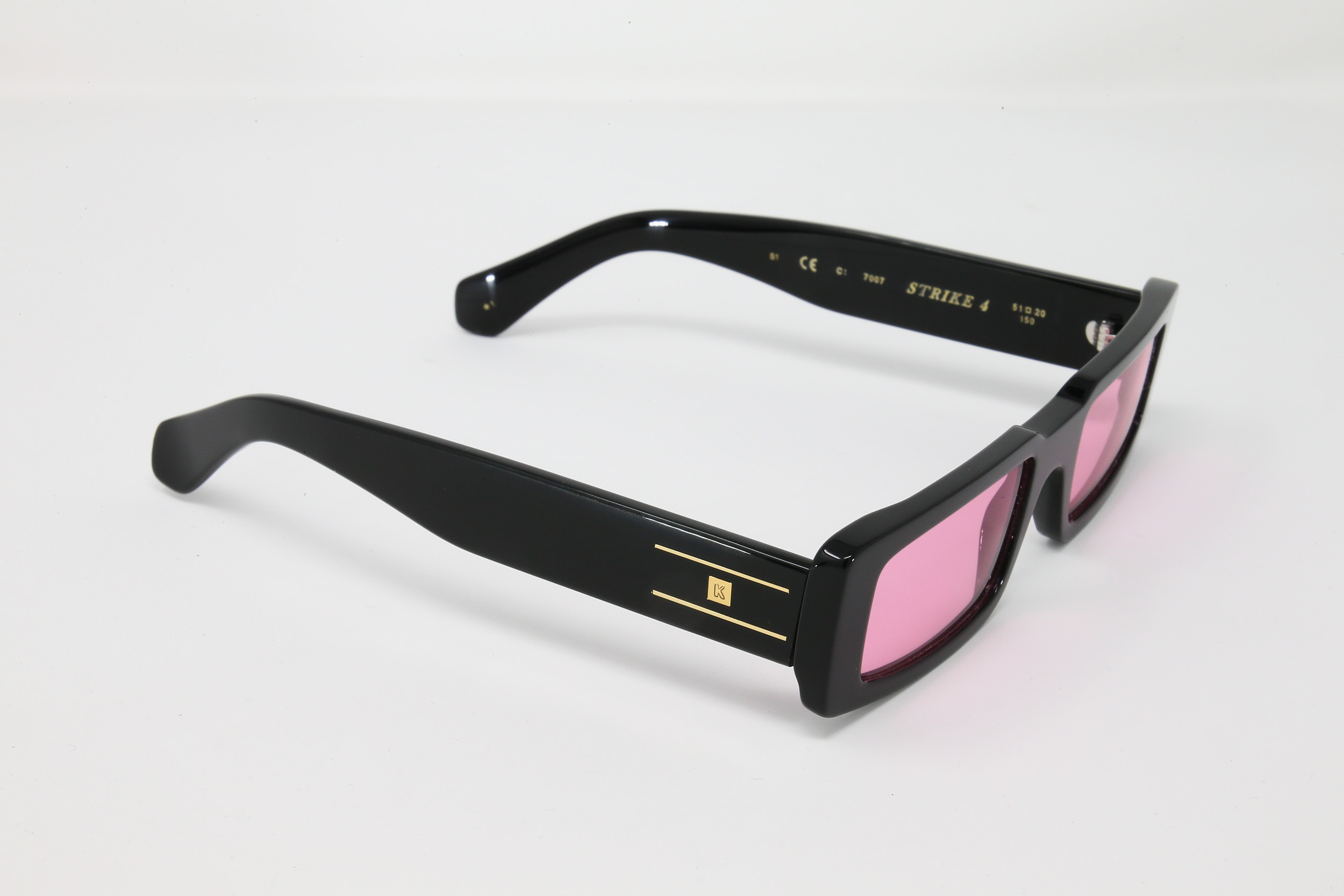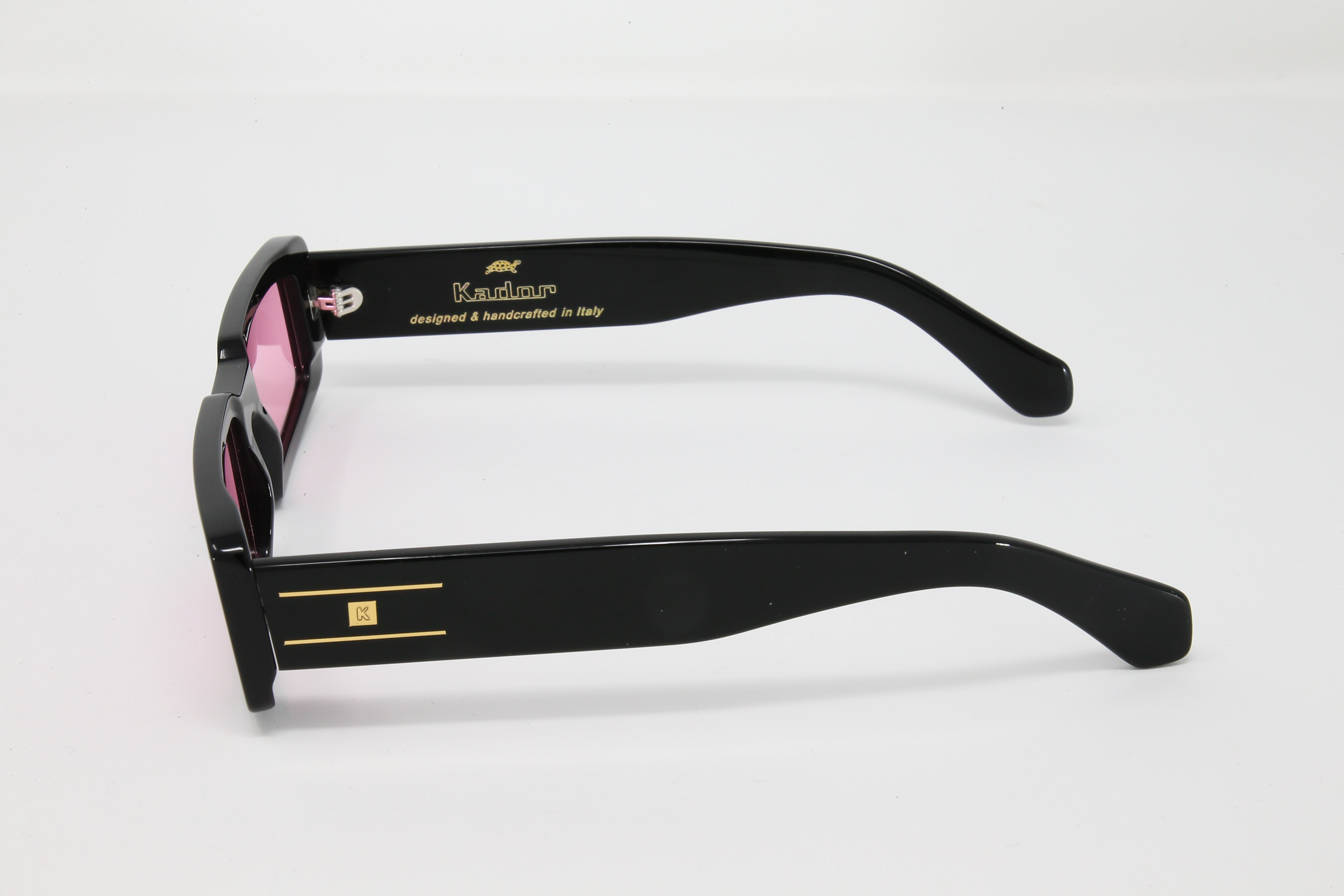 montatura colore nero lucido con lente rosa con antiriflesso interno