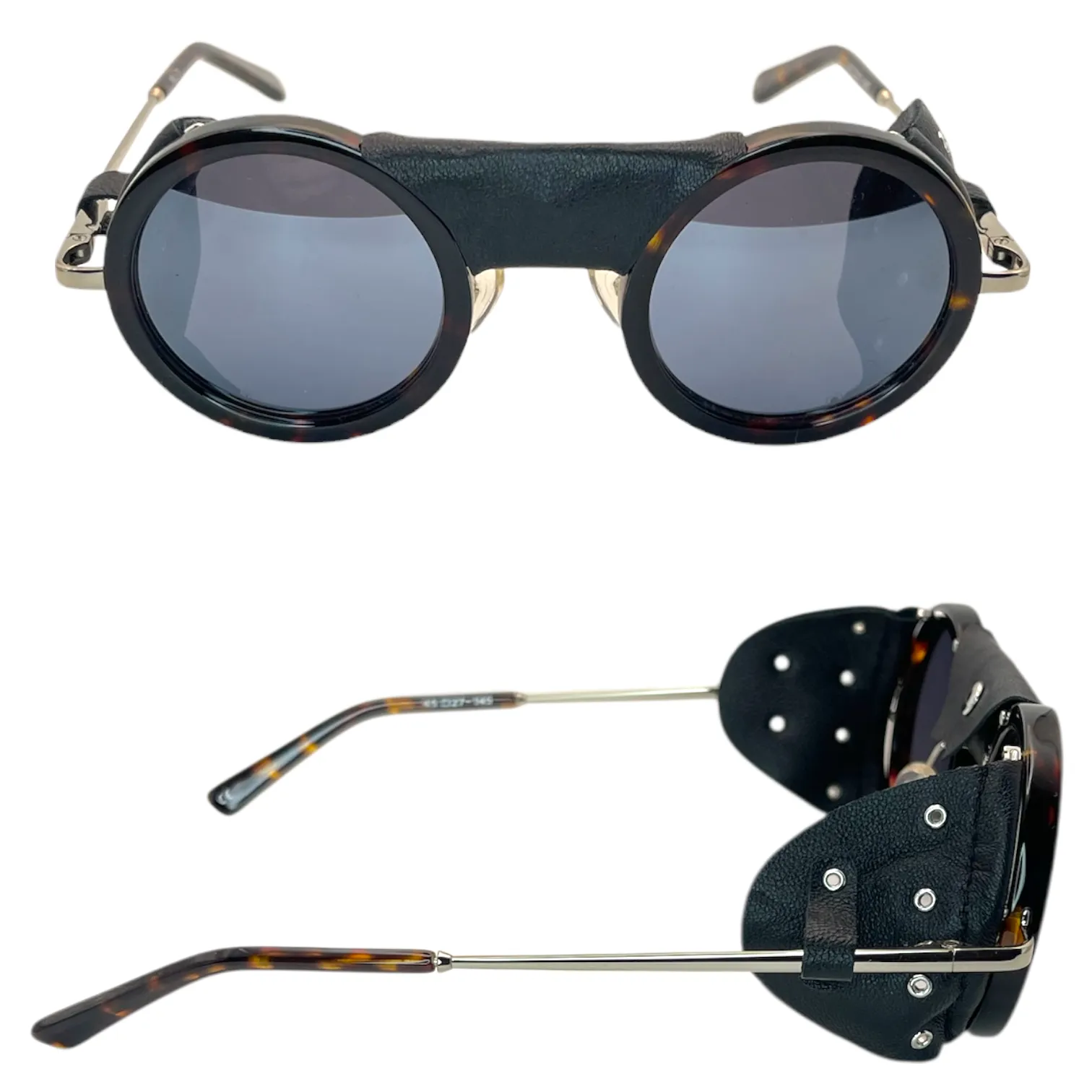 Montatura tartaruga opaco inserti in pelle lente azzurro specchiato /Componenti in pelle rimovibili
