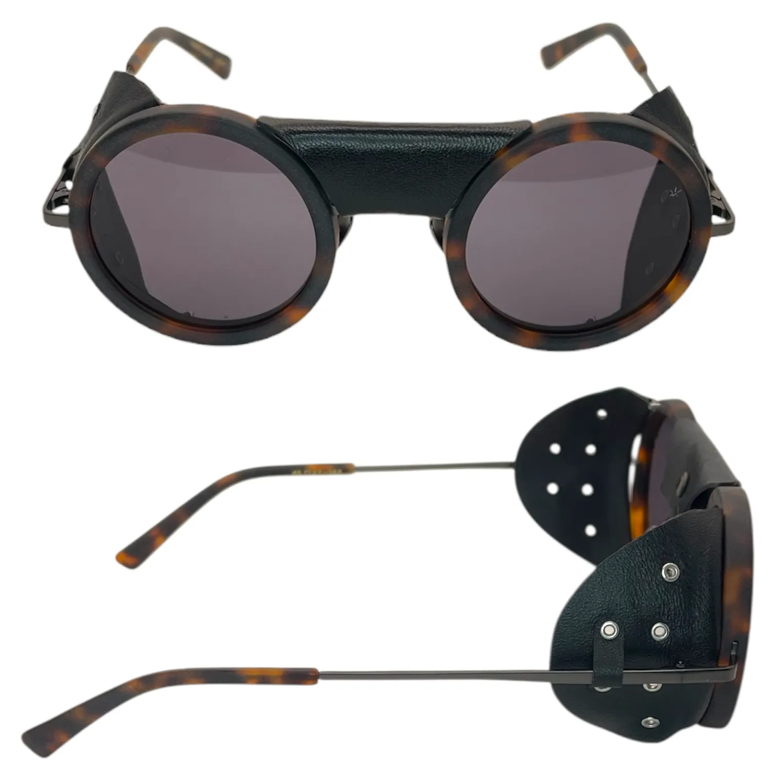 Montatura tartaruga opaco inserti in pelle lente viola scuro /Componenti in pelle rimovibili