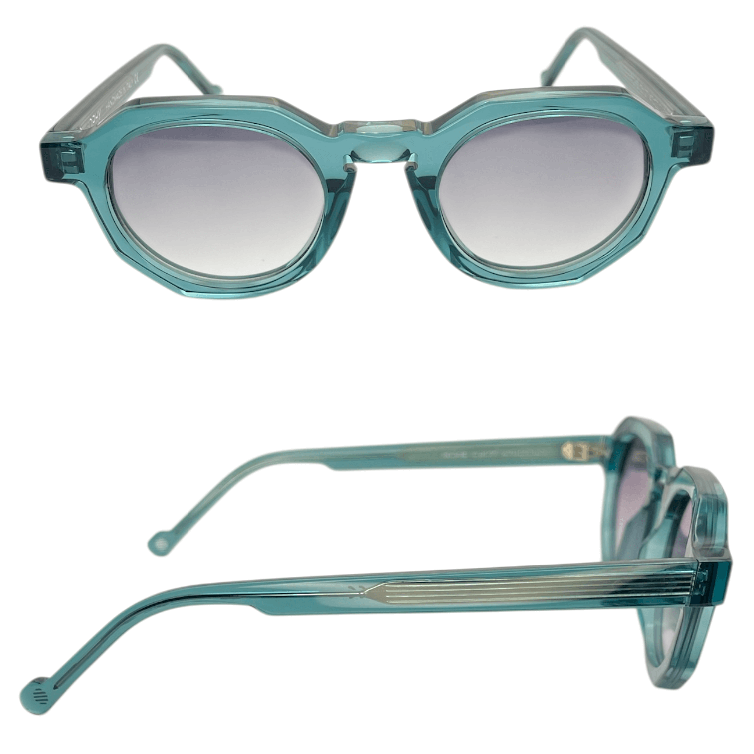 Montatura verde acqua trasparente lente grigio chiaro sfumato