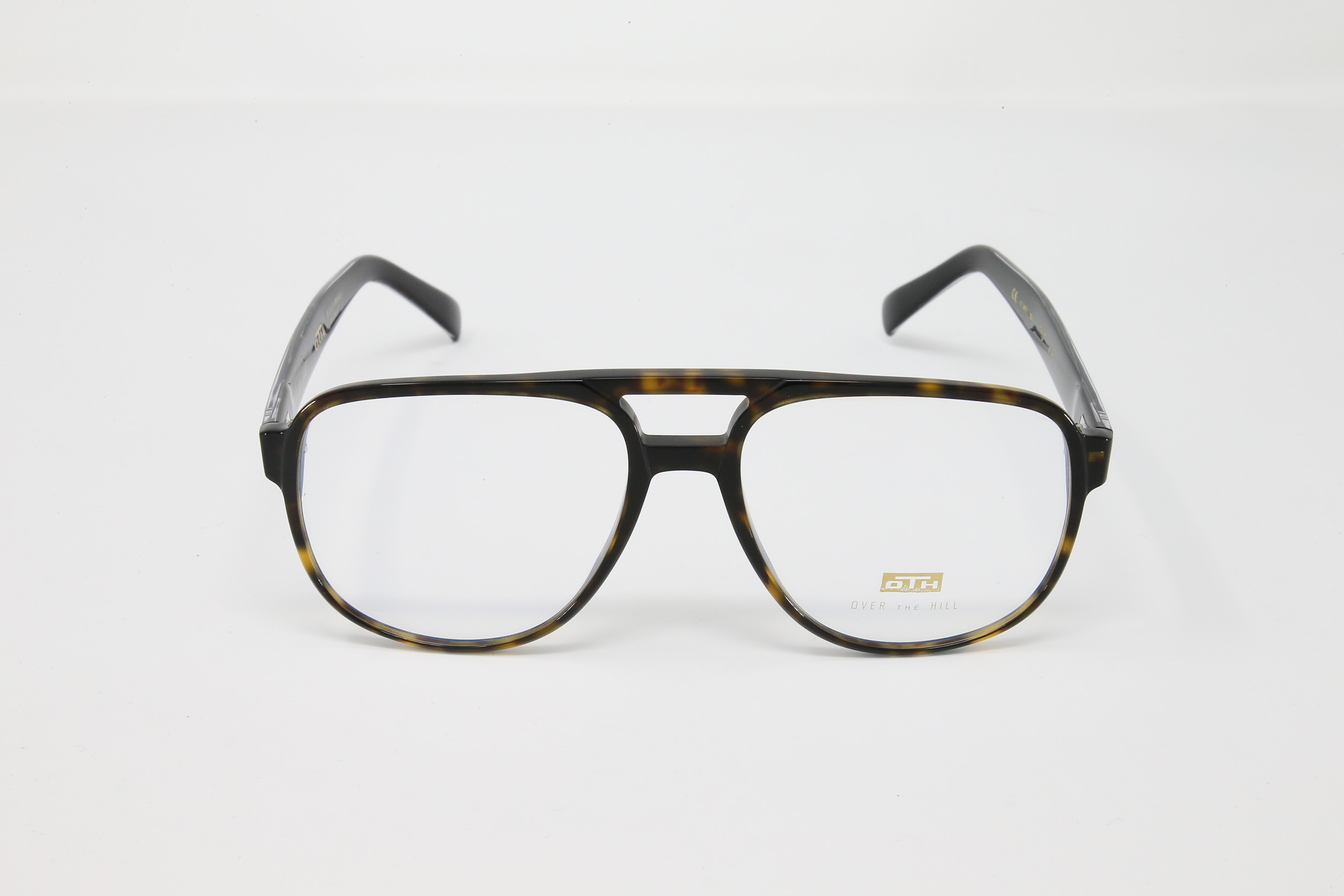 montatura con frontale colore tartaruga ed aste a contrasto nero trasparente lucido