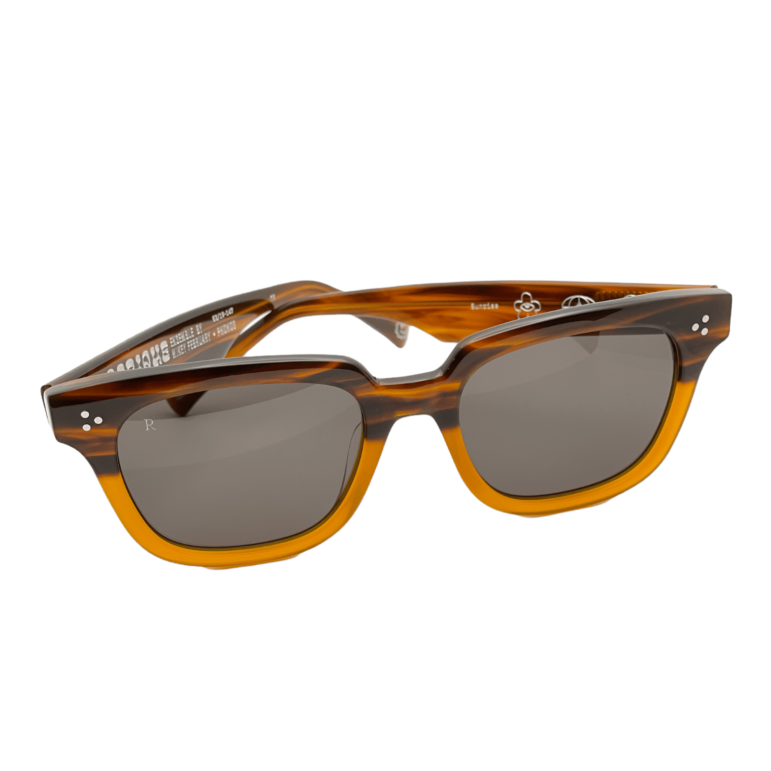 Montatura sunrise cigliare marrone e arancio lente grigio scuro