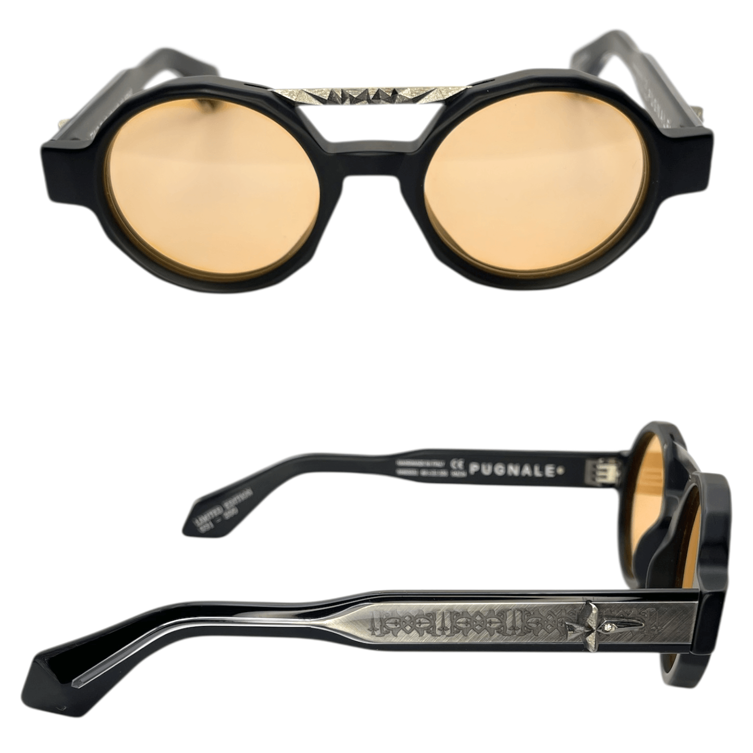 Montatura nero opaco lente arancio inserti in argento con Diamanti naturali taglio tondo
