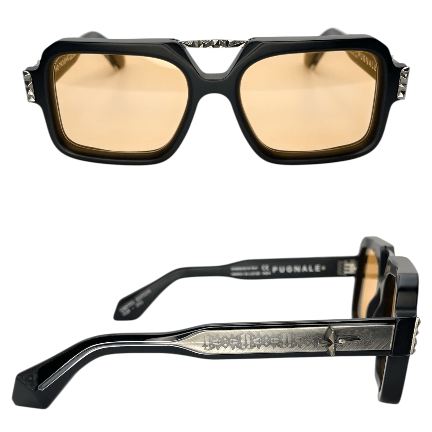 Montatura nero opaco lente arancio inserti in argento con Diamanti naturali taglio tondo