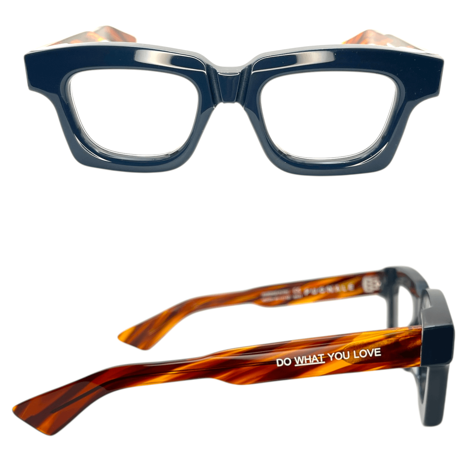 Montatura frontale blu scuro aste tartaruga striato