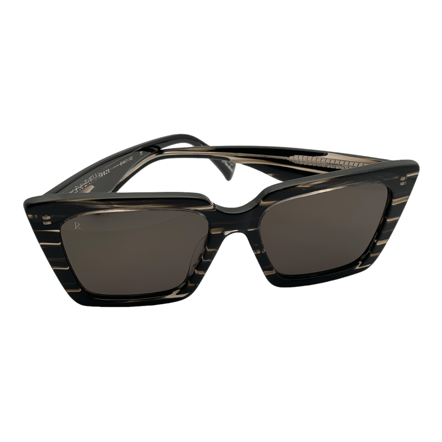 Montatura rigata nero e grigio lucido lente grigio scuro