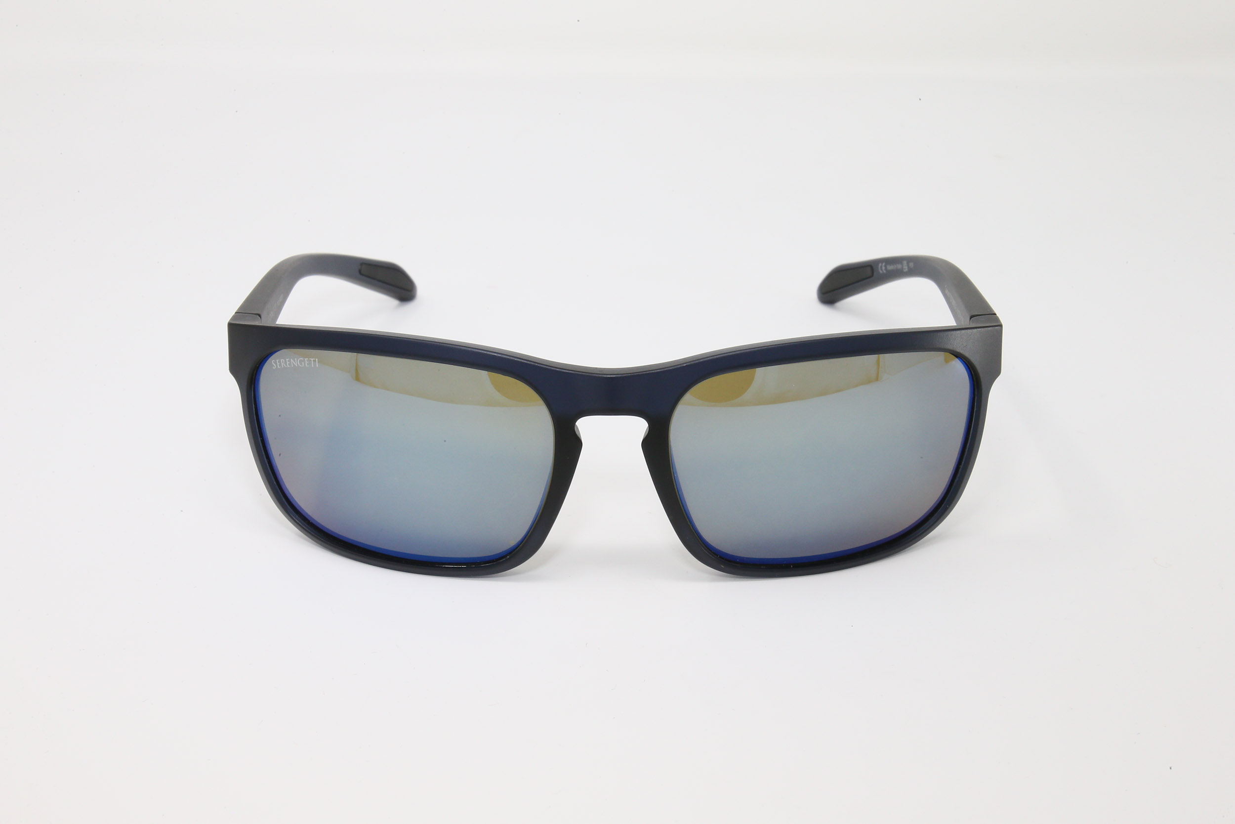 montatura nero opaco con lente grigioverde con flashatura blu