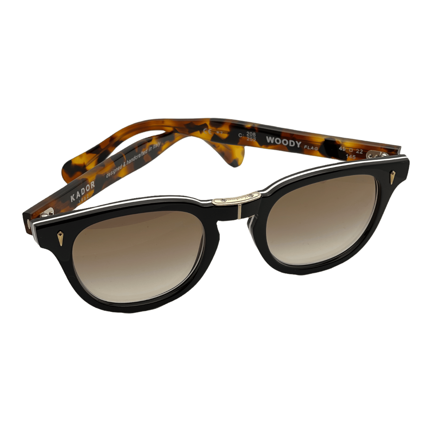 Frontale nero lucido aste tartaruga lente marrone sfumata