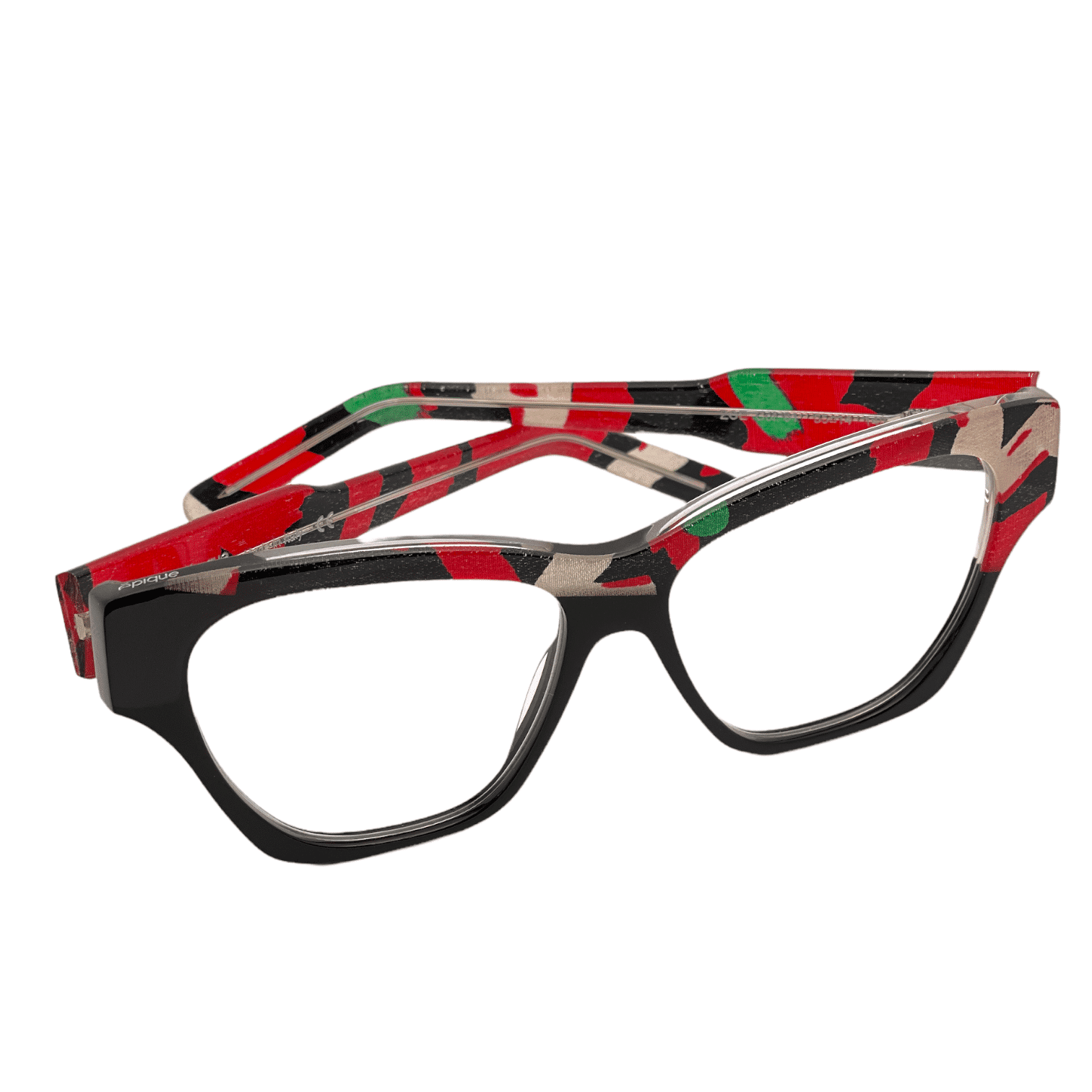 Montatura nero lucido cigliare e aste nero verde e rosso